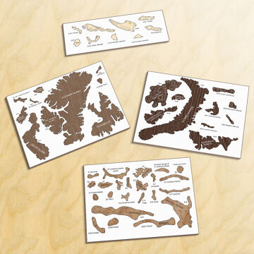 Ebenfalls enthalten ist ein Leitfaden aus Papier, der die Lage und Form aller Inseln zeigt. Bitte beachten Sie, dass die meisten Inseln aufgrund der begrenzten Möglichkeiten der Holzproduktion vergrößert sind - das bedeutet, dass sie keine 1:1-Darstellung der Geografie sind. Im Paket ist kein Klebeband enthalten. Sie können das Klebeband verwenden, das mit der Holzkarte geliefert wird, oder Sie können eine zusätzliche Rolle im Bereich Zubehör kaufen.
